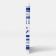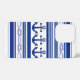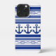 Ce boîtier téléphonique a un design nautique amusant avec des ancres, des cordes et des rayures en bleu sur un arrière - plan blanc.