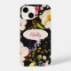 Coque iPhone Aquarelle rose Roses jaunes sur noir, Monogramme