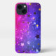 arrière - plan bleu rose Abstrait avec points et étoiles lumineux.