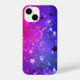arrière - plan bleu rose Abstrait avec points et étoiles lumineux.