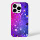 arrière - plan bleu rose Abstrait avec points et étoiles lumineux.