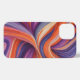 Un remolino dinámico de naranja, violeta y azul que combina la calidez y la frescura en un movimiento celestial. Un diseño abstracto que explora la interacción entre colores cálidos y fríos.