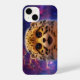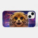 Illustration imaginaire d'un mignon bébé cheetah peluche contre un ciel cosmique magique.