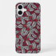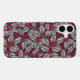 Coque iPhone Baie de houx, feuilles grises sur fond rouge foncé