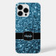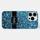 Personnalisez Sparkly coque iphone avec votre initiale et votre nom. De belles parties scintillant brillantes d'un bleu clair brillant et girly brillent. Photo de bébé bleu étincelle pas de parties scintillant réelle!