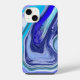 Coque iPhone Bleu et Marbre blanc Abstrait Fluid Art