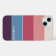 Design élégant et chic classique contemporain violet, bleu, framboise rouge, corail blush et ivoire rayures de blocs de couleur motif. Avec de la place pour customiser avec le nom de votre choix. Belle couverture moderne et cool pour le brancheur tendance et amateur d'art branché, amoureux de motifs artistiques qui veut protéger leur téléphone de la poussière et de la saleté, de l'usure et de la déchirure. Cette conception est disponible en iPhone 6, 7, 8 Plus, 10 ou X, XR, XS, 11, 12 et 13 coques de mini, 14, 15 Plus et Pro Max. Montrez votre style, regardez à la mode, et sentez élégant avec un design unique sur un accessoire mobile de votre choix.