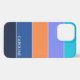 Contemporain classique bleu azur foncé, orange saumon, violet violet et bleu aqua bleu turquoise rayures de bloc design motif. Avec de la place pour customiser avec le nom de votre choix. Belle couverture moderne et cool pour le brancheur tendance et amateur d'art branché, amoureux de motifs artistiques qui veut protéger leur téléphone de la poussière et de la saleté, de l'usure et de la déchirure. Cette conception est disponible en coques de téléphones cellulaires Apple iPhone 6, 7 et 8 Plus, 10 ou X, XR, XS, 11, 12, 13 Mini, 14, 15 Plus et Pro Max. Montrez votre style, regardez à la mode, et sentez élégant avec un design unique sur un accessoire mobile de votre choix.