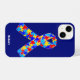 Ruban de Sensibilisation sur l'autisme personnalisée iPhone 14 coque pour amis autistes ou famille. Un cadeau de père ou de mère autiste cool qui peut être personnalisé avec n'importe quel texte sous le ruban de la pièce de puzzle de bleu, jaune et rouge. Un joli syndrome d'Asperger est présent.