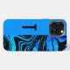 Le boîtier de téléphone portable a un bloc solide de bleu d'un côté et un motif tourbillon en bleu et noir de l'autre côté. Personnalisez avec une initiale, un nom ou un autre texte pour une excellente idée cadeau. Le nom est en orientation verticale en lettres noires.