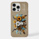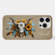 Coque iPhone Boho Chic Aquarelle Tournesol Plumes Vache crâne
