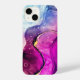 Coque iPhone Boîtier de téléphone à encre d'alcool rose, pourpr