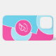 Beau rose chaude et contemporaine, pastel clair, bleu turquoise d'aqua, et cercles blancs motif. Avec la place de customiser ou de personnaliser avec un nom monogramme ou initial de votre choix. Conception amusante, élégante, élégante et éclectique pour la fashionista artistique, la diva de mode artsy, populaire branchiste, style rétro vintage, et amoureux abstrait de motifs numériques géométriques qui veut protéger leur téléphone de la poussière et la saleté, l'usure et la déchirure. Cette conception est disponible pour iPhone 6, 7, et 8 Plus, 10 ou X, XR, XS, 11, 12, 13 Mini, 14, et 15 coques de téléphonie mobile Pro Max. Montrez votre style, regardez à la mode et sentez élégant avec un design unique sur un appareil mobile de votre choix.