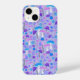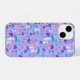 Ce boîtier téléphonique est décoré de mignons champignons et fleurs illustrés dans une palette de couleurs violet et bleu turquoise onirique.