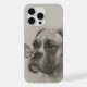 Protégez votre iPhone Pro Max avec une touche artistique. Ce coque présente un dessin au crayon détaillé d'un chien Boxer avec un papillon sur le nez — parfait pour les amoureux de les chiens qui apprécient un design élégant et inspiré de la nature.
