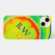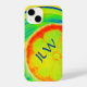 Avec une tranche d'agrumes psychédéliques en orange vif, jaune, bleu et vert, ce boîtier de téléphone multicolore tropical a une ambiance pop art rétro qui est amusante et colorée. Personnalisez-le avec Initiales. Cette image est une photo originale de JLW_PHOTOGRAPHY