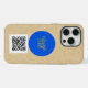 Coque élégant iPhone 15 Pro Max orné d'un code QR et d'un logo, parfait pour les utilisateurs à la recherche de la protection et de la commodité.