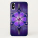 Cet abstrait froid a été créé à partir d'une fractale de l'Apophyse transformée en kaléidoscope à six branches. Le design est orné d'un flocon de neige encadré d'argent avec incrusté de bleu profond, de violet et de lavande, serti de gemmes roses rondes et accentué d'un bijou rose profond au centre. L'ensemble donne l'effet d'une lumière douce et enneigée brillant à travers le noir et le bleu de minuit d'une nuit d'hiver sombre.