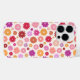 Colorful flower pattern in yellow, orange, pinks, lilac and reds on a cream color background.