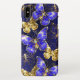 Composition des luxueux papillons saphir et bijoux en or sur arrière - plan bleu texturé.