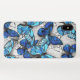 Vertical composition of réalistes, blue and white morpho butterflies on gray textured background. Morphine bleu.
