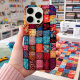 Étui de téléphone vibrant et coloré inspiré d'un quilt avec un design patchwork complexe. Un cadeau idéal pour les amateurs de quilts et les passionnés de bricolage !