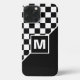 Les drapeaux de course automobile cool sont conçus sur un arrière - plan à damiers noir et blanc. Avec place pour customiser ou personnaliser avec un nom, monogramme ou initiales de votre choix. Ce design hipster design et fantaisiste est fait pour les amateurs de course automobile et de sport automobile, de go-kart de course, de dirtbike champ, et tous les autres amateurs de sport automobile, automobile et automobile. Couverture moderne, et cool pour le branché branché tendance et amateur d'art, amoureux de motifs d'art qui veut protéger leur téléphone de la poussière et de la saleté, de l'usure et de la déchirure. Cette conception est disponible dans les coques de téléphones cellulaires Apple iPhone 6, 7 et 8 Plus, 10 ou X, XR, XS, 11, 12 et 13 Mini, 14, 15 Plus et Pro Max. Montrez votre style, regardez à la mode, et sentez élégant avec un design unique sur un accessoire mobile de votre choix.
