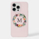 Coque iPhone Couronne de fleurs de rose de monogramme d'automne