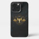 Coque iPhone Crâne d'oiseaux dorés sur arrière - plan noir