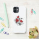 Contour, lune de croissant mécanique avec des engrenages, décoré de roses rouges avec des tiges noires spirées et feuilles sur arrière - plan blanc. Steampunk