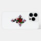 Croix d'argent avec une rose rouge et des feuilles noirs sur un arrière - plan blanc.