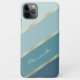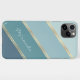 Boîtier de téléphone mobile rayé couleur vert marine et bleu turquoise contemporain. Avec la possibilité de customiser avec un nom, un monogramme ou des initiales de votre choix. Belle couverture moderne et cool pour le brancheur tendance et amateur d'art branché, amoureux de motifs artistiques qui veut protéger leur téléphone de la poussière et de la saleté, de l'usure et de la déchirure. Cette conception est disponible pour les coques de téléphones cellulaires Apple iPhone 6, 7 et 8 Plus, 10 ou X, XR, XS, 11, 12, 13 Mini et 14 Pro Max. Montrez votre style, regardez à la mode et sentez élégant avec un design unique sur un appareil mobile de votre choix.