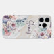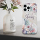 This customizable phone case features a soft marble background paired with elegant watercolor florals in purple, pink, blue, and cream tones. Add any name in stylish script to create a chic, personalized accessory that blends modern marble texture with romantic botanical art. Perfect as a gift for birthdays, bridesmaids, moms, teens, or anyone who loves feminine floral designs and custom phone cases.