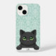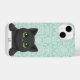 Coque iPhone Cute Black Cat Peeking Kawaii Cartoon Mint Damask