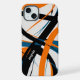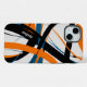 Ce capot de téléphone portable moderne et design présente un design dynamique avec des lignes intersectées et fluides dans les tons gras orange, noir et turquoise contre un arrière - plan blanc propre. Les lignes se tortillent et se chevauchent, créant un sens du mouvement et de l'énergie, rappelant l'art abstrait moderne. Votre nom est imprimé dans une police blanche, positionné verticalement pour compléter le flux énergétique du design. Remplacez le nom ou supprimez-le. Le style artistique est contemporain et géométrique, mettant l'accent sur les couleurs audacieuses et les formes fluides pour créer un aspect visuel attrayant et frappant, parfait pour ceux qui apprécient une esthétique moderne et artistique.