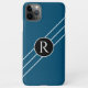 Personnalisez le Monogramme blanc en cercle blanc et noir avec 3 lignes diagonales blanches sur l'arrière - plan bleu océan. Cliquez sur "Personnaliser" pour modifier les couleurs et les styles de type.