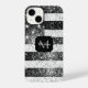 Coque iPhone Drapeau américain noir blanc brillant argent Monog