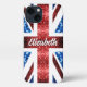 Personnalisez le faux coque iphone brillant avec votre nom. Drapeau du Royaume-Uni parkly en parties scintillant rouge et bleu faux scintillant. Nous utilisons des photos étincelantes et non des parties scintillant réelles.