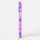 Le boîtier de téléphone portable a un bloc solide de rose d'un côté et un motif violet et rose de l'autre moitié. Ajoutez une initiale, un nom ou un autre texte en orientation verticale en lettres noires pour un cadeau plus significatif.