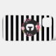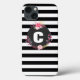 iPhone d'Apple 8/7 cas qui a un motif noir et blanc de rayure avec une conception florale de monogramme au centre. Vous pouvez personnaliser cette caisse en ajoutant votre nom ou initiale utilisant le modèle customisé.