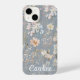 Protect your phone with the quiet elegance of this custom floral case. The design showcases a beautiful hand-painted botanical illustration on a serene dusty blue backdrop. With a personalized name in flowing script, this case offers a tailored feel that makes it a thoughtful gift or a special treat for yourself. The sturdy accessory ensures your device stays safe while displaying a refined, nature-inspired look that remains stylish throughout the year. © Happy Ann Designs.