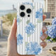 Coque iPhone Elegant Blue Hydrangea Pattern Gray Stripe