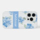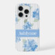 Coque iPhone Elegant Blue Hydrangea Pattern Gray Stripe Name