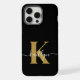 Ce simple et élégant Coque noir iPhone 15 Pro Max avec votre prénom dans une police de script tendance en blanc tapé sur votre première initiale dans une police de casquette moderne en or aurait l'air fabuleux sur votre téléphone portable et le gardera à l'abri du bris. C'est design, tendance et pourtant très classique.