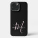 Élégant Noir Noir Blush Pink Script Monogramme Téléphone Boîtier. Un élégant monogramme Blush Pink combiné à une police blanche de san-serif propre donne un look contemporain.