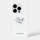 Cette élégante coque de iPhone blanche comporte une écriture calligraphique noire avec le mot 'Mariée'.
