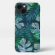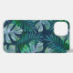 Watercolor tropics palms and monstera leaves on a navy blue background.