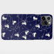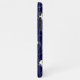 Figure motif de patinage avec patins pour femmes blanches, laissant des patins de patinage dans la glace entourés de flocons de neige et de points de neige tombant. Placez-vous sur une strate bleue foncée.