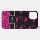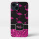 Personnalisez le faux coque iphone à la mode avec votre nom et votre initiale. Belle parties scintillant rose brillant girly brillent été exotique flamand motif d'oiseau flamand sur le noir. Photo de parties scintillant rose pétillant !
