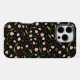 Coque iPhone Fleur mignonne, rose sur noir avec motif répétitif